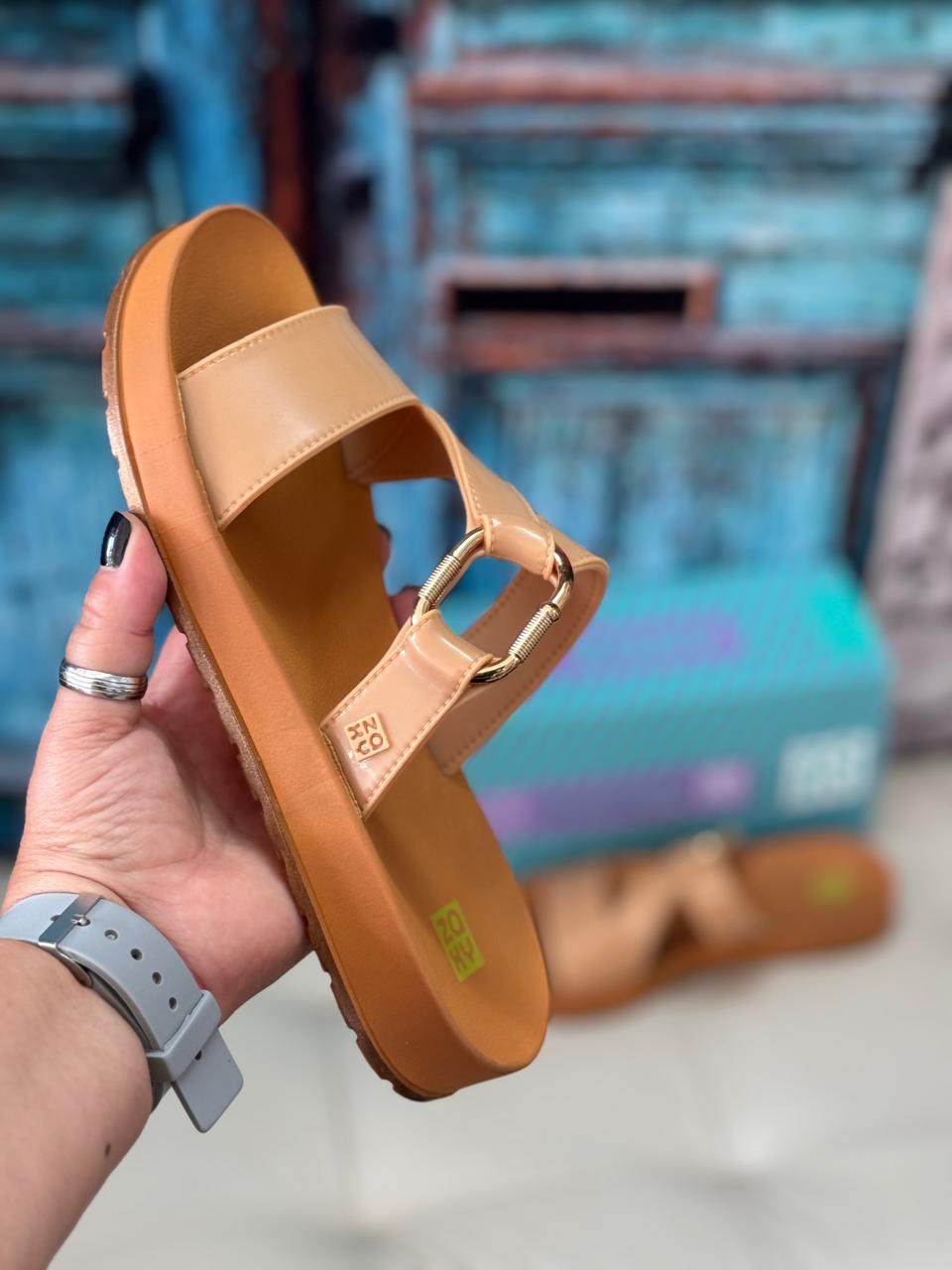 Eleve o seu conceito de praticidade com o Slide Zaxy Caramelo, o equilíbrio perfeito entre o minimalismo e o moderno. Com um design e recorte diferenciado, este modelo transforma uma rasteira básica em uma peça de desejo. Sua construção leve, com apenas 1 cm de salto, garante que você esteja impecável, sem abrir mão da liberdade que os dias de calor exigem.